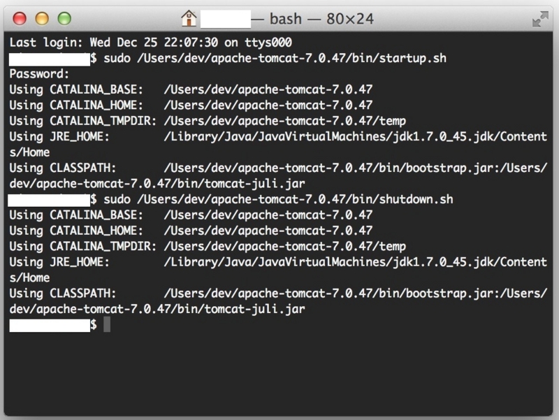 2013-12-21 tomcat7のインストール 開発 長い間お世話になっているtomcatですが、最新ver&Macということでちょい緊張しつつインストールしてみました。 参考サイト d.hatena.ne.jp ダウンロードした後、フォルダに移動して起動〜 うん問題無さげ。 停止〜 eclipseにも設定完了…ですが、確認はまた後日に。